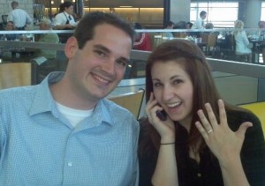 “When I got off my connecting flight in Dallas; there he was. My parents were able to be there as well because my dad pulled some strings. Her dad also filmed the proposal and put it on Youtube, so the world knows that we got engaged at Dallas Fort Worth airport."