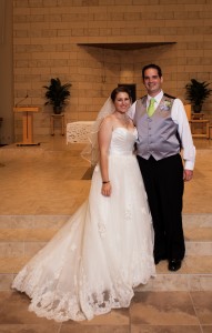 On a sweltering day in June of 2012, Kristen and Nick were wed at St. Jude Catholic Church, in Allen Texas. “The only thing that I regret is that we didn’t have a Mass because I wasn’t Catholic yet. [Editor's Note: It’s acceptable to have a wedding Mass as long as one person is a baptized Catholic. However, the non-Catholic cannot partake in Holy Communion]. I wish I had been able to receive Communion with my husband.”